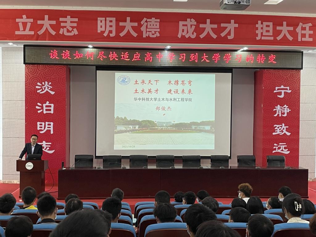 (通讯员 潘将军)10月28日下午,华中科技大学教授、长江学者郑俊杰为m麻豆 大一学生作题为《如何尽快适应高中学习到大学学习的转变》的报告。郑俊杰结合自己的教学经历,告诫同学们“规划好自己大学生活”的必要性,提醒同学们应该从大一开始制订明确目标,保持高中阶段的自律,远离手机游戏,多参加体育活动、社团活动,丰富自己的大学生活,努力成长为一个对国家,对社会有用的复合型人才。