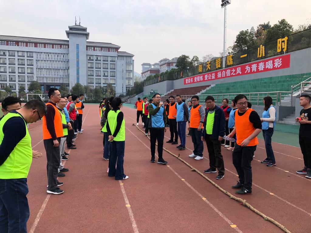 首届教职工趣味运动会在北区运动场召开,该院50余名教职工组成4支代表队参加《足式保龄球》《报纸托水》《送鸡毛信》《拔河比赛》等4个项目的比赛。