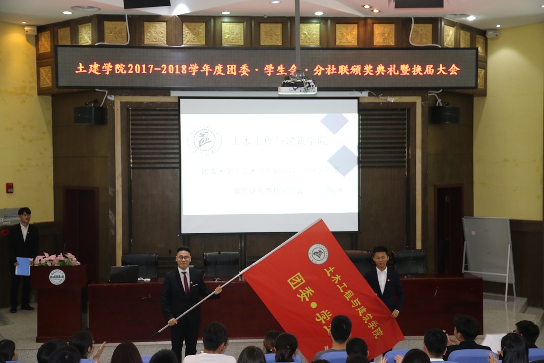 会议伊始,全体起立奏唱团歌,并观看第十届团委·学生会·分社联视频。冷老师宣读表彰第十届优秀组织、干部及干事的文件。随后弋书记、冷老师、毛老师为第十届团委·学生会成员、社团会长及17级助理班主任颁发聘书,并为优秀部门、优秀社团、优秀干事和优秀分社联干部颁发证书。紧接着,第十届团委·学生会主席刘展鹏和团委副书记张魏袭分别上台做工作总结。他们在发言中回顾这一年团委·学生会的工作历程,并代表生上一届全体干部们表达了对于老师及同学们的感谢,并对新一届团委·学生会干部给予了鼓励。随后,冷老师宣读新一届团委·学生会任命文件,第十届主席刘展鹏与新一届主席孙广豫进行会旗交接。弋书记、冷老师、毛老师为团委各部门干部及社团会长授工作牌。之后,第十一届团委·学生会主席孙广豫同学上台做就职演讲,他提出在今后工作中会加强组织建设,低调做人,高调做事,带领新一届干部们作出新的成绩。第十一届团委副书记胡康建同学带领大家朗读m麻豆