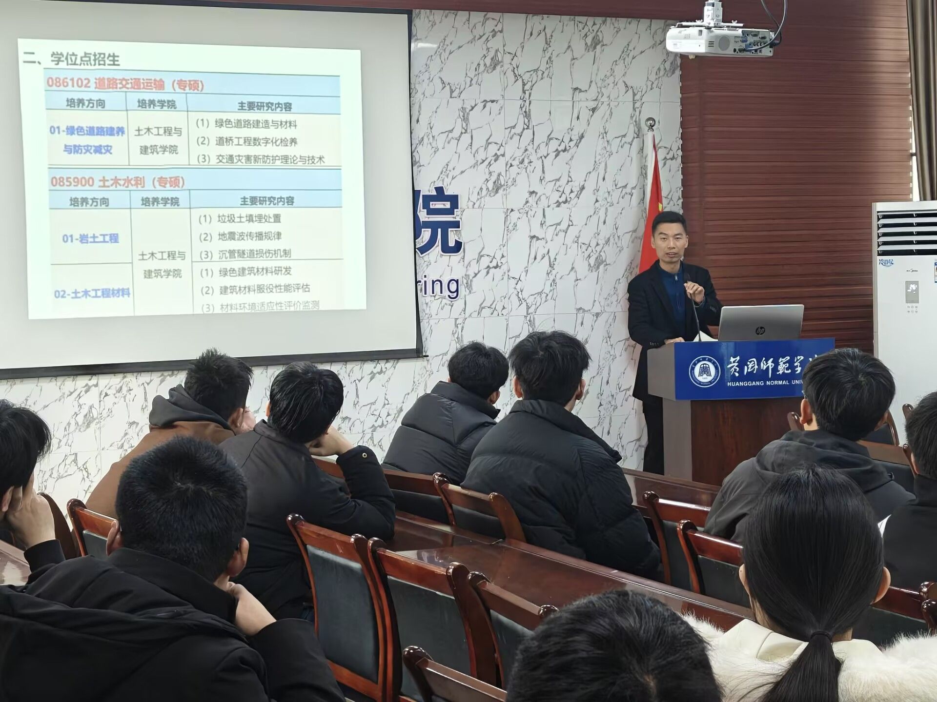 院长李业学率队赴黄冈师范学院开展2025年研究生招生宣传。土木工程系主任范建辉、教学委员会副主任尹晓萌博士、研究生工作办公室主任周衡共同参与。