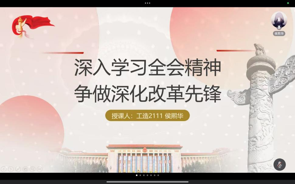 学生党支部在腾讯会议召开了“深入学习全会精神,争做深化改革先锋”线上主题党日活动。全体学生党员参会。