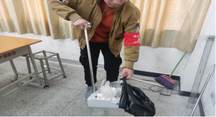 微风不燥、阳光正好,过午时的阳光在这个季节显得更加温暖,志愿者们提前来到工科楼下集合。首先,负责人进行了点名、分发袖章及拍照,随后强调了在活动中需要注意的事项。前期准备工作完成后,志愿者们井然有序的去到了自己负责的地点。清洁工科楼活动正式开始,大家分工明确,有的负责擦桌子;有的负责打扫地面;有的负责摆放物品,工作效率非常高。在经过一个小时的努力之后,大家各自负责的楼层变得干干净净,看到自己努力的成果,不禁让人心情愉悦。活动结束,志愿者们在楼下集合拍照。