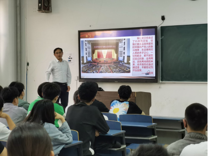 本次党课的主题为“从党史学习中汲取奋进前行的智慧和力量”,主讲人为教务处处长聂军老师。聂老师介绍了党史及党史学习教育的重要意义。聂老师告诉同学们,要以史为鉴,要学会通过历史映照现实、远观未来,希望同学们要居安思危、具有强烈忧患意识,要不断从党史学习教育中汲取智慧和力量,努力成为合格的建设者和可靠的接班人。