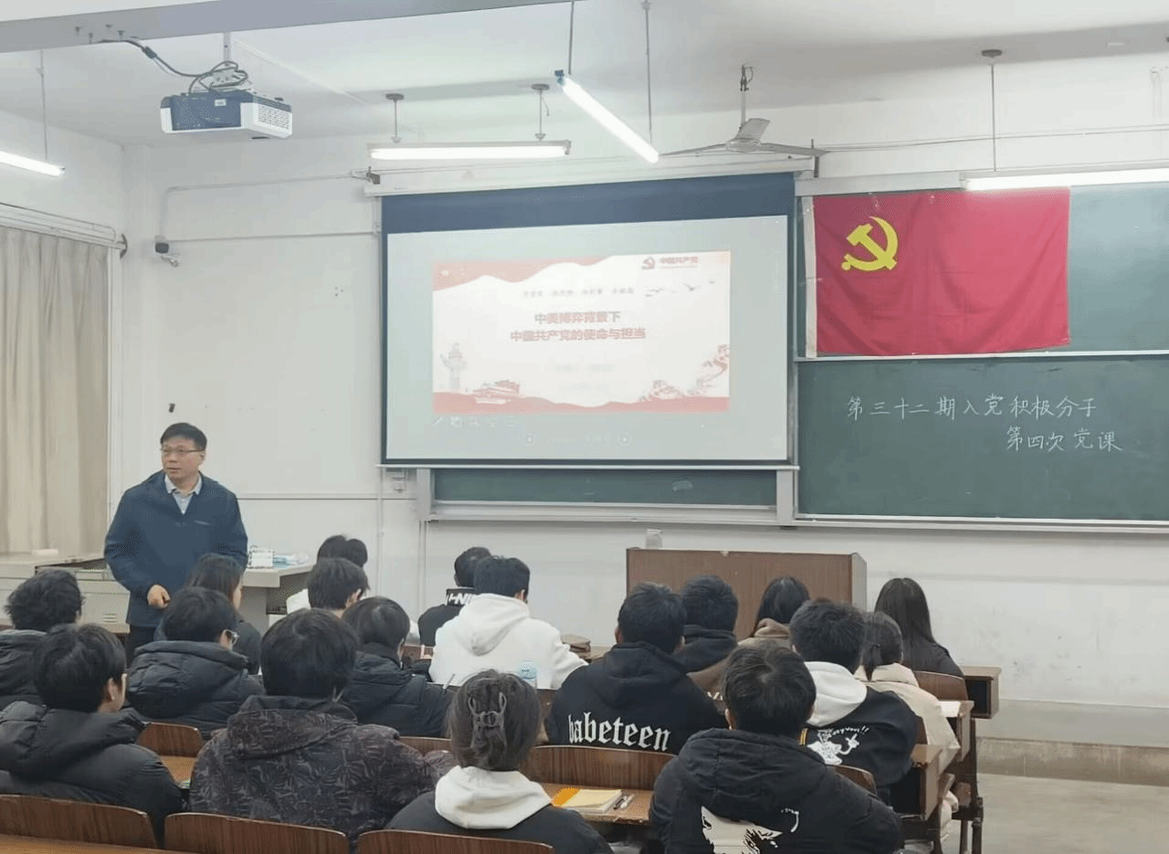 本次党课主题为“中美博弈背景下中国共产党的使命与担当”,主讲人为学校研究生院副院长高其文。党课过程中,同学们纪律严明,全神贯注地听着老师的讲述,老师联系当下时事与国际局势,为同学们深度剖析了中美在政治体制、贸易往来、军事战略等领域的博弈。借助生活中的实例,同学们深刻认识到外部干扰对国家发展的挑战,也更清晰地领悟到中国共产党使命担当的重大意义。讲解过程中,全体学员都心无旁骛,受益匪浅。