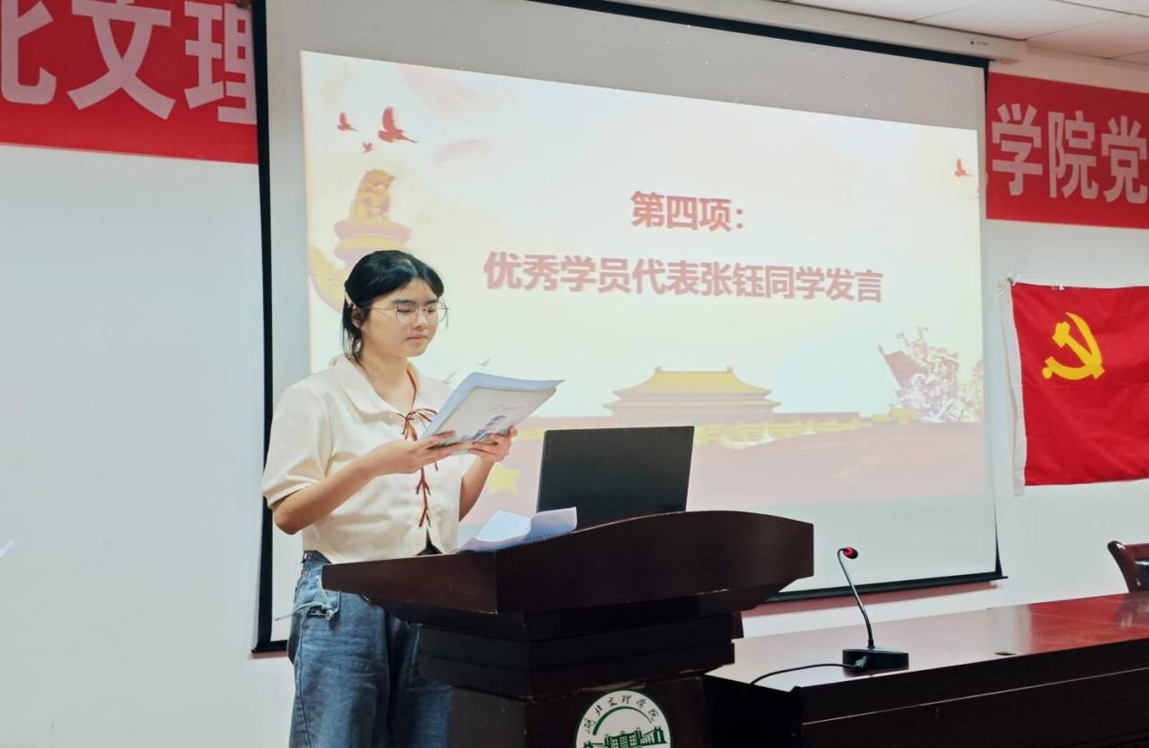 第三十三期入党积极分子培训班结业名单》以及《关于表彰第三十三期入党积极分子培训班优秀学员、优秀组织者及优秀小组的决定》。刘老师对顺利完成培训、取得结业资格的学员表示祝贺,并对在培训期间表现突出、获得表彰的个人和集体给予肯定。典礼第三项为颁奖环节。学院党委书记黄海老师为获得“优秀学员”“优秀组织者”和“优秀小组”荣誉称号的个人和集体代表颁发了荣誉证书。黄书记向获奖者表示热烈的祝贺,并勉励全体学员以先进为榜样,继续追求进步。典礼第四项,优秀学员代表张钰同学作交流发言。张钰同学结合自身在党校培训期间的学习经历和思想感悟,分享了学习收获和心得体会,表达了对党组织的向往和追求进步的坚定决心,并表示将以此为新的起点,在今后的学习、工作和生活中,继续加强理论学习,提升党性修养,积极向党组织靠拢,争取早日成为一名光荣的共产党员。