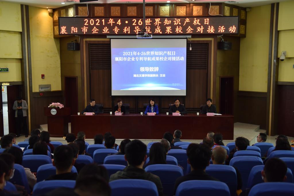 (通讯员 张芳)4月26日上午,“2021年4·26世界知识产权日襄阳市企业专利导航成果校企对接活动”在我校致远楼一楼报告厅举行。本次活动的主题是“全面加强知识产权保护,推动构建新发展格局”,活动由襄阳市市场监管局主办,我校联合襄城区市场监管局和湖北国科中智科技发展有限公司承办。副校长汪云,襄阳市市场监管局党组成员、副局长胡启敏,三级调研员赵建国及我市各县(市、区)市场监管分局负责人等领导出席活动。活动由襄城区市场监管局党组书记、局长余洪波主持。我市30余家重点企业代表和襄阳四所高校师生代表参加活动。