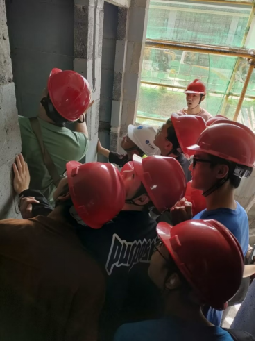 实习过程中,同学们热情高涨、不断提问,借着对新校区的无限遐想,憧憬自己在宽敞明亮的图书馆自习和舒适安逸的公寓楼休息,完美地将建筑设计理论与实际工程问题相结合。