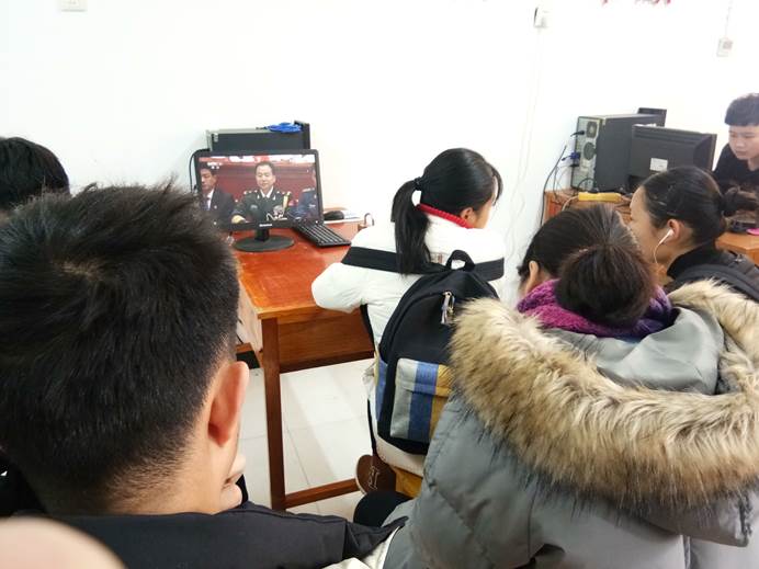 (同学们在观看直播 潘慧敏摄)