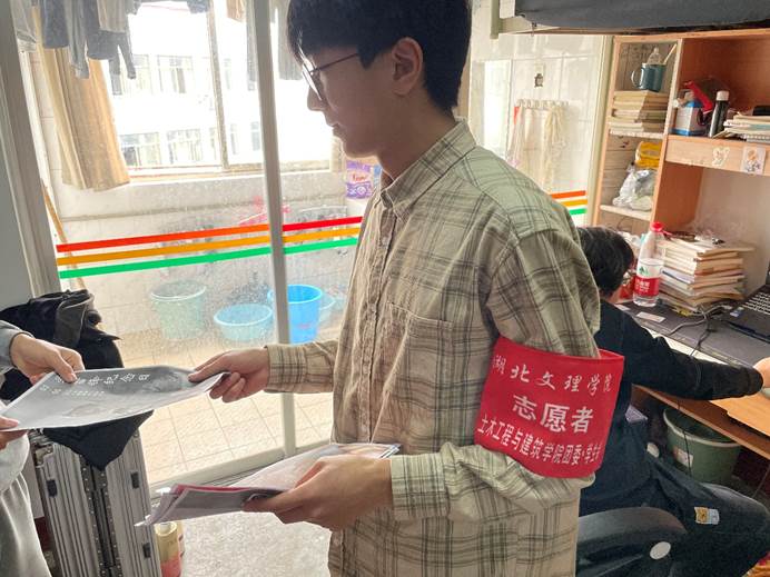 图为志愿者进入寝室对同学进行宣传