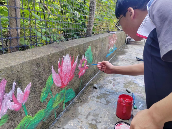 为了推进美丽乡村建设,切实帮助改善乡村人文人居环境,实践团队将艺术设计融入乡村文化振兴,在渔坪村农家乐周围做了墙绘改造。他们用手中的画笔为乡村绘制墙绘、增添色彩,更好地将画卷书写在祖国大地,用墙绘为文化振兴贡献力量。墙绘作品不仅能够改善村容村貌、吸引游客,还能够作为教育和文化的载体,向村民传播积极向上的精神文化。