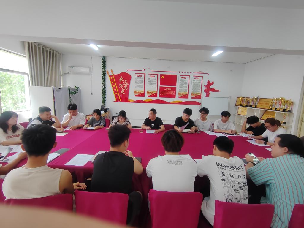 于“筑梦”一站式社区开展暑期安全教育主题会。辅导员潘将军和各年级班长参加。会议由辅导员潘将军主持。
