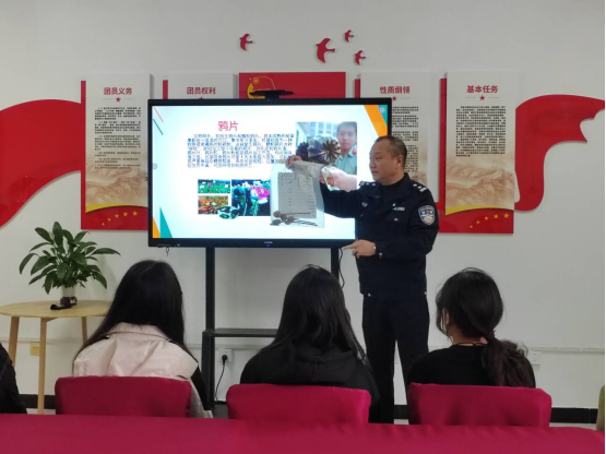 襄城区禁毒办民警曾辉以“珍爱生命 拒绝毒品”为主题,详细地讲解了毒品的性质、种类、特征等知识,与同学们进行了现场交流,给同学们展示了各类毒品的模型,让同学们深刻认识到了毒品对个人、家庭、社会乃至国家的危害和禁毒工作的意义,深入浅出地给同学们分析了毒品的危害,告诫同学们认清危害、树立自我保护意识。讲座结束后,学院组织部分志愿者在校园街道和公寓楼栋,发放禁毒宣传手册向同学们讲解吸毒的危害。