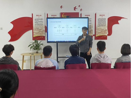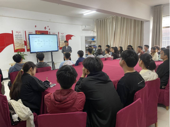 在“筑梦”一站式社区开展创新创业交流会,由学院大创中心主任范建辉副教授为同学们讲解。会议由学工办主任冷翔主持。