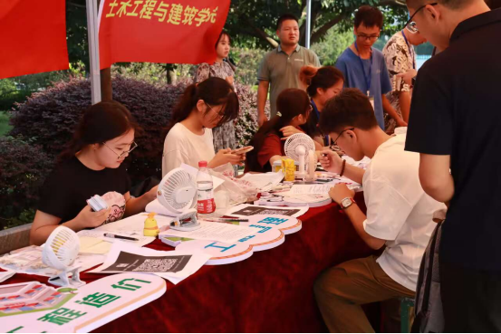 的老师们、学生志愿者们在卧龙广场开展迎新工作。他们热情的迎接从全国各地远道而来的新同学们,用温和的笑脸、亲切的问候温暖着新生。