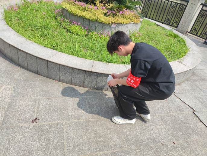 下午两点半,志愿者们在淡泊湖旁集合后便拿起各自所带的工具展开了清扫。有的同学带了垃圾袋,徒手捡起垃圾,还有的同学拿着扫帚,另一个就用工具装。同学们都在与认真的清扫,良好的精神风貌为炽热的夏天增添了一份凉意。在活动中,大家互相配合、积极清理,不一会就将淡泊湖周围的草坪、台阶等地上的烟头、废纸、塑料瓶等垃圾捡拾干净。