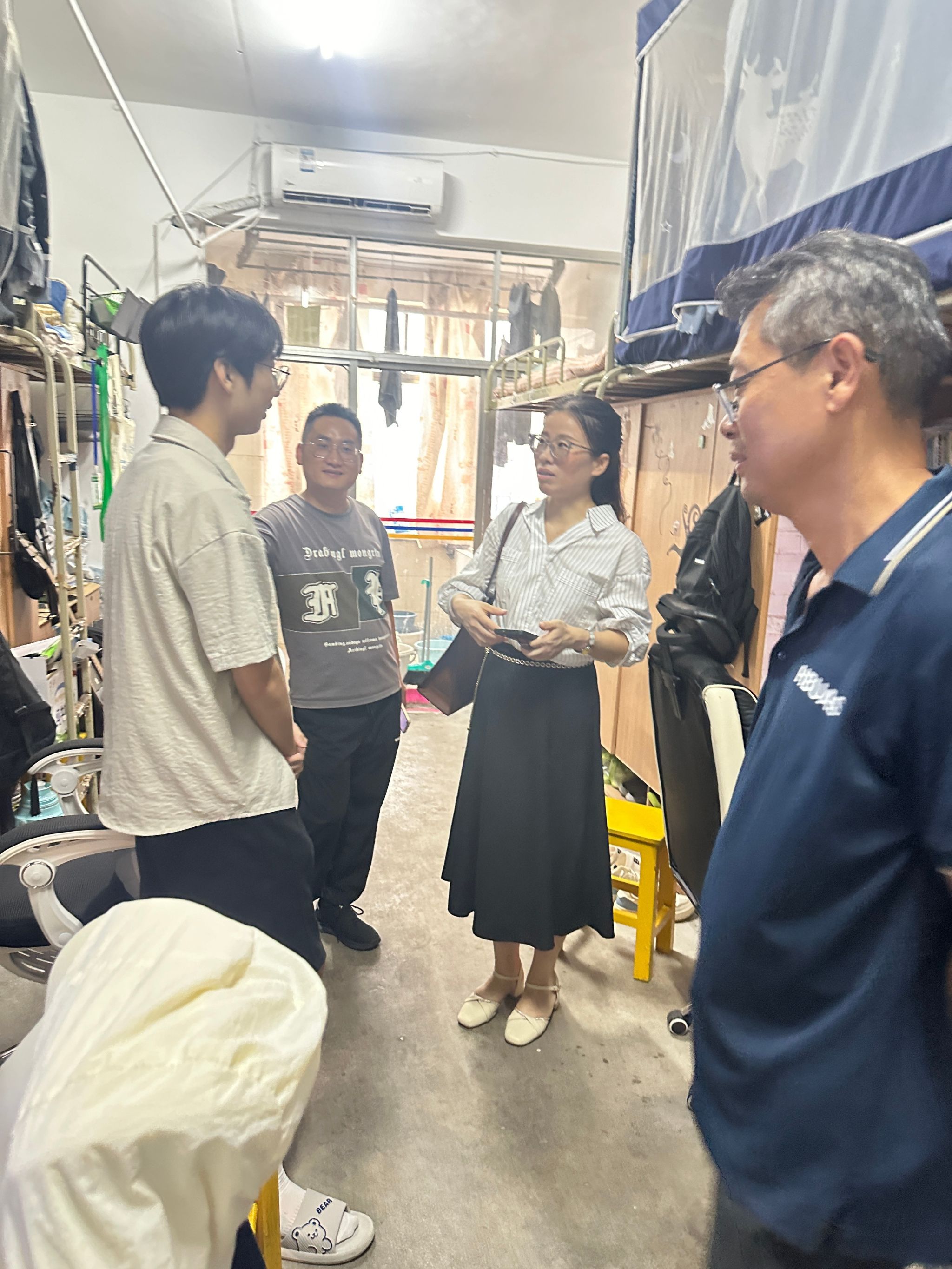 副院长徐福卫携建筑与城市更新系系主任与支部书记,深入学院“一站式”学生社区及17栋学生公寓,实地了解2024级新生在校的学习与生活情况,以实际行动表达学院对新生的深切关怀。