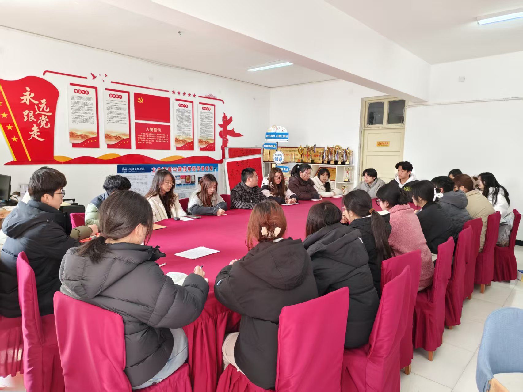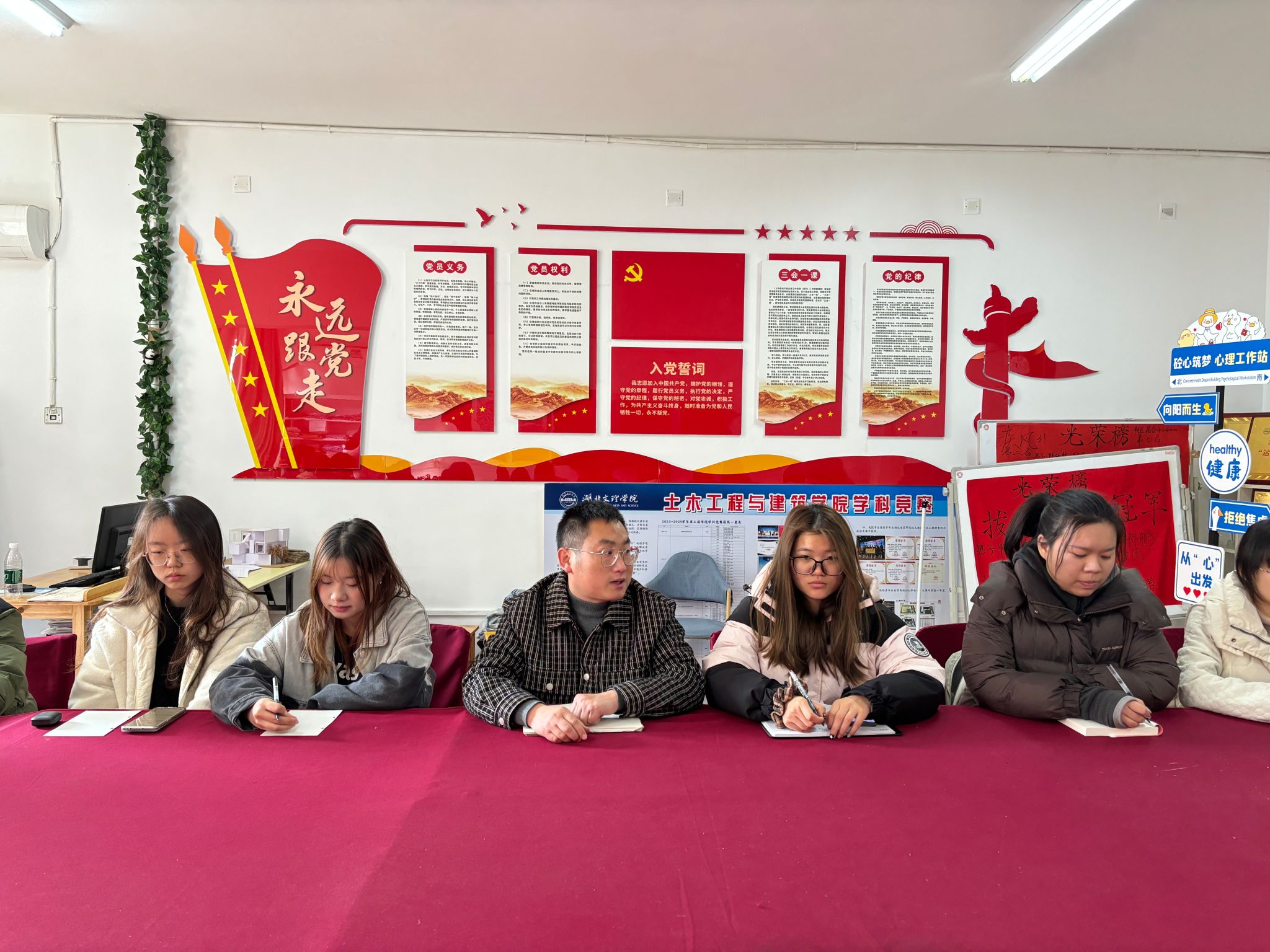 辅导员潘将军组织团委学生干部在“筑梦”学生社区对学院寒假“返家乡”社会实践经验成果进行总结,同时规划部署2025年团委学生工作。