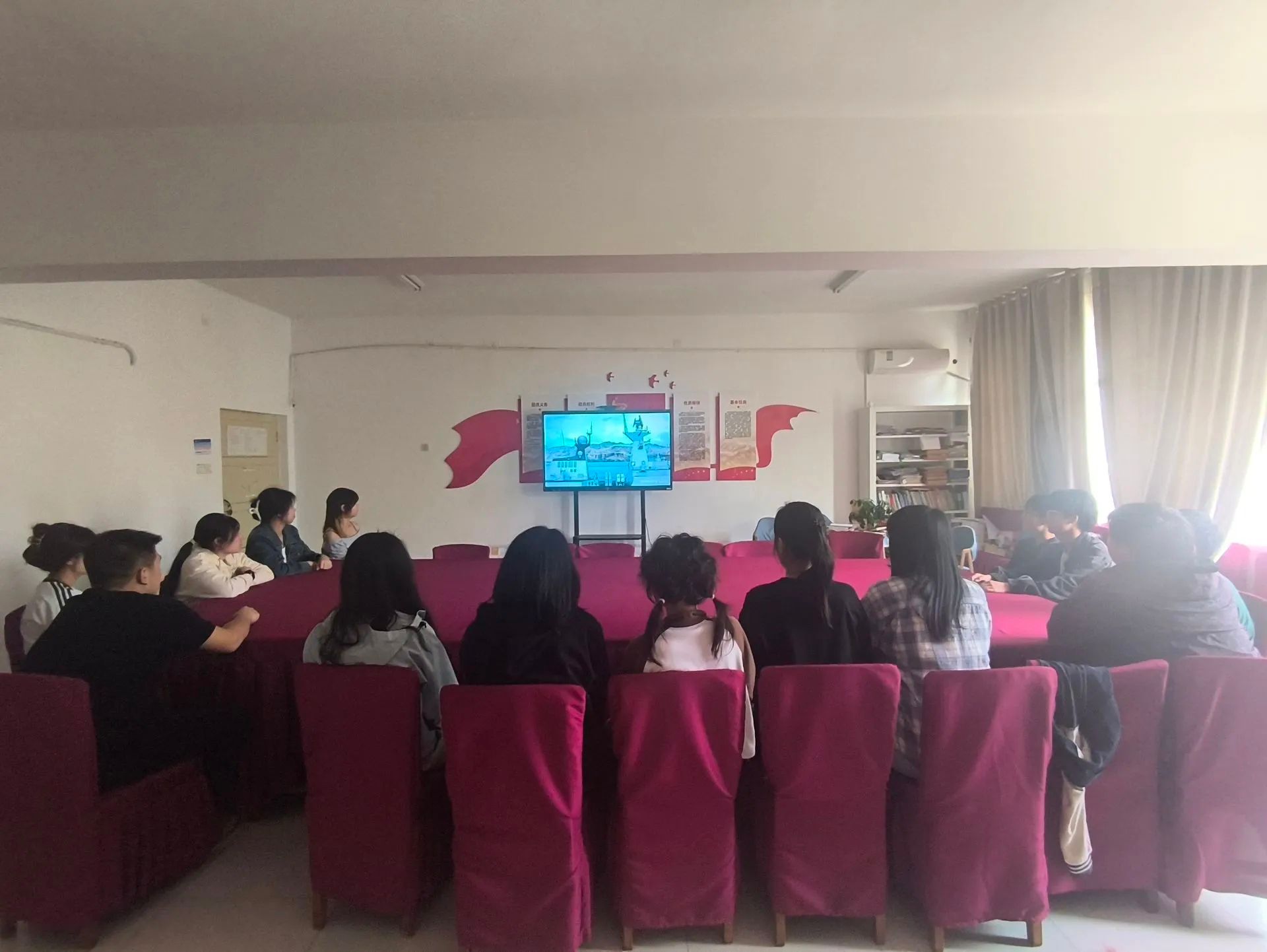 在17栋二楼“砼心筑梦”一站式社区,为建筑2311班的同学代表们带来一场震撼心灵的光影盛宴——《红海行动》。