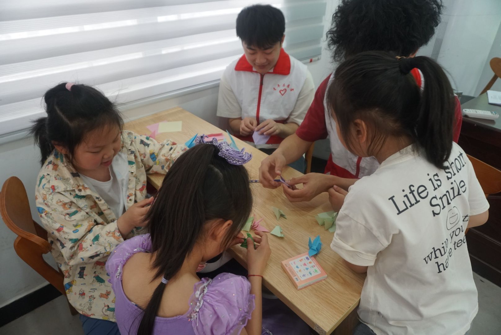 在大学生志愿者的指导下,孩子们动手折起了各式各样的小物品。这堂手工折纸趣味课锻炼了孩子们的动手能力,同时也进一步激发了孩子们的思维想象力与语言表达能力。