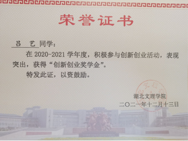 大二,他担任班上的团支书兼生活委员,并在社团中担任副社长。他开始处理班级上的事务,认真完成团日工作,积极组织社团活动。从那时起,他的组织能力、执行能力、人生观、世界观有了很大的提升。并在大三上学期通过了英语四级和计算机二级考试。