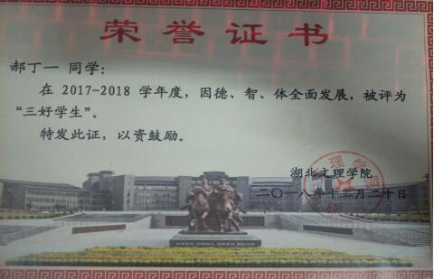 郝丁一,男,土木工程1712班级优秀毕业生,曾获得过卧龙英才奖学金、创新创业奖学金、三等奖学金、三好学生,担任过志愿服务部部长、土木工程1913班代理班主任、心理委员,参加过省交建厅项目、参加过两次全国承重大赛、工程测量大赛、辩论赛三等奖、襄阳马拉松优秀志愿者。