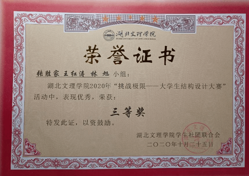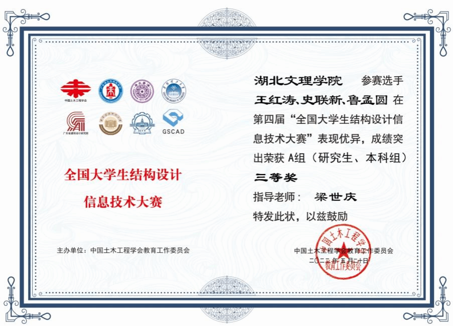 自入校以来,王红涛深知学习是学生的第一要务,只有善于学习,勤于思考,不断积累,才能有质的飞跃。在自身不懈的努力下,连续两学年取得了班级成绩第一、综合测评专业第一的好成绩。闲暇时间还积极备考各种证书,大二、大三期间通过了国家英语四级考试、英语六级考试、国家普通话测试、计算机二级、三级。积极参加各类学科竞赛、大学生创新创业项目,在全国大学生结构设计信息技术大赛获得国家级三等奖,在全国大学生电子商务“创新、创意及创业”挑战赛获得校级三等奖,全国大学生结构设计大赛校级三等奖,获得各级各类荣誉二十余项。参与国家级大学生创新创业项目《磷石膏在钢结构防火涂料中的应用研究》获得国家级奖项,主持全国大学生创新创业项目《不同材料的混凝土基本构件受力性能的研究》,参与全国大学生创新创业项目《新冠肺炎下急性物资调配模型研究》项目。2022学年发表论文《新型混凝土材料在土木工程中的应用与发展》。