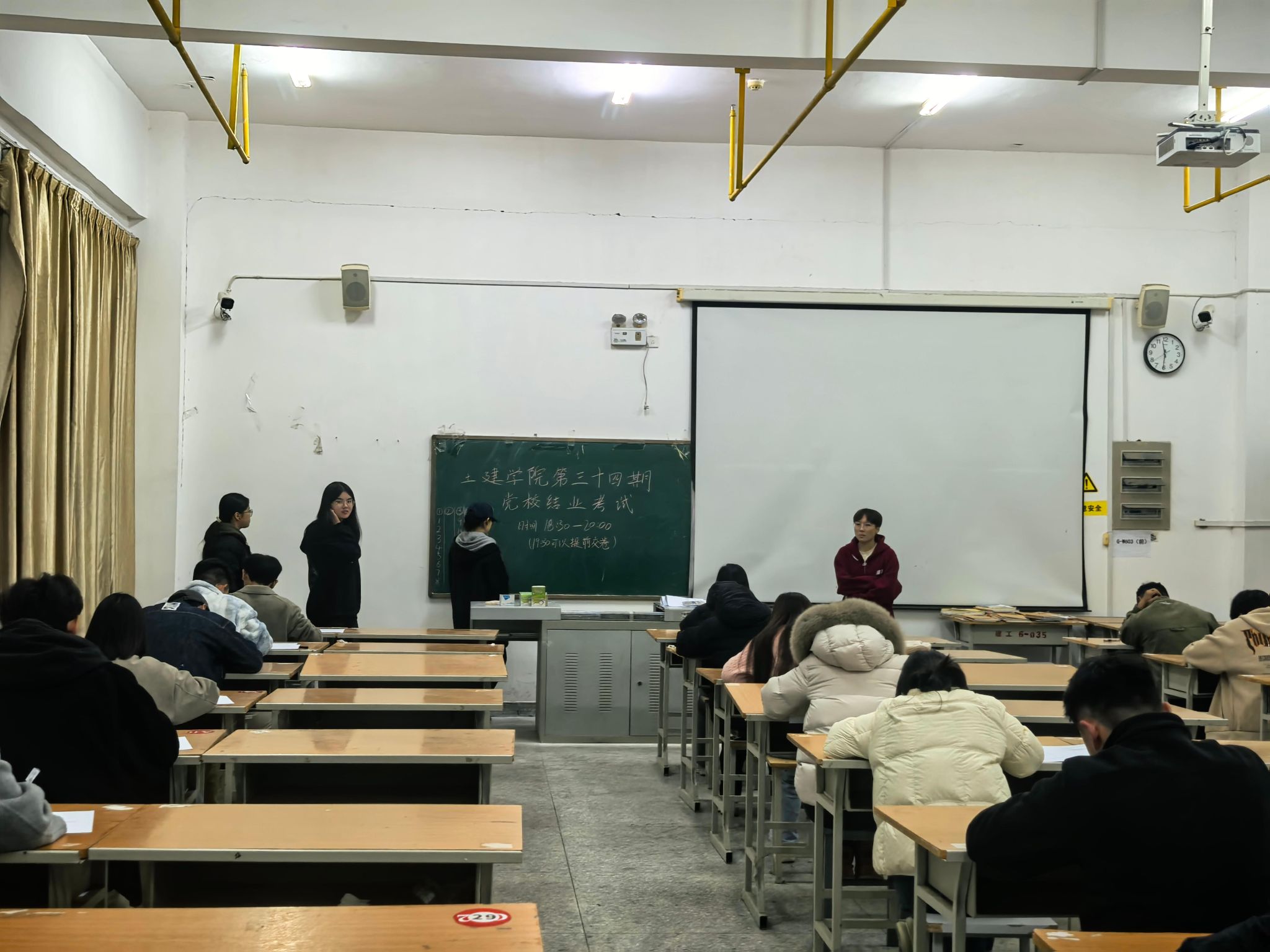 第三十四期党校结业考试在工科楼GW-603教室如期举行。