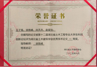 科研育人成果的高度肯定,也进一步激发了学生参与科技创新、投身科研实践的积极性和创造力。未来,学院将继续以学科交叉融合和科研能力提升为重点,鼓励更多青年学子积极参与高水平科研活动,为服务区域发展和行业进步培养更多高素质土建类人才。